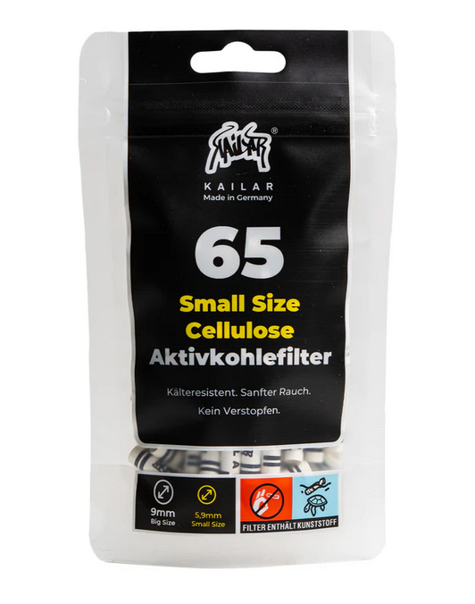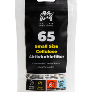 Kailar aktivni filteri s ugljenom i celulozom promjera 5,9mm nude jedinstvenu kombinaciju filtracije i ekološke prihvatljivosti. Punjeni aktivnim ugljenom iz kokosove ljuske i izrađeni od celuloze, ovi filteri su 100% biorazgradivi. Njihov dvostruki sustav filtracije priža hladniji dim i smanjuje unos štetnih tvari, dok čepovi od celuloze sprječavaju ulazak sitnih čestica u pluća.